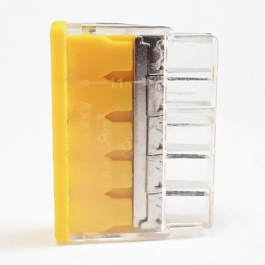 Профессиональная 5-проводная клемма с токопроводящей антикоррозийной пастой для надежного соединения проводников. Прозрачный корпус обеспечивает визуальный контроль качества соединения.