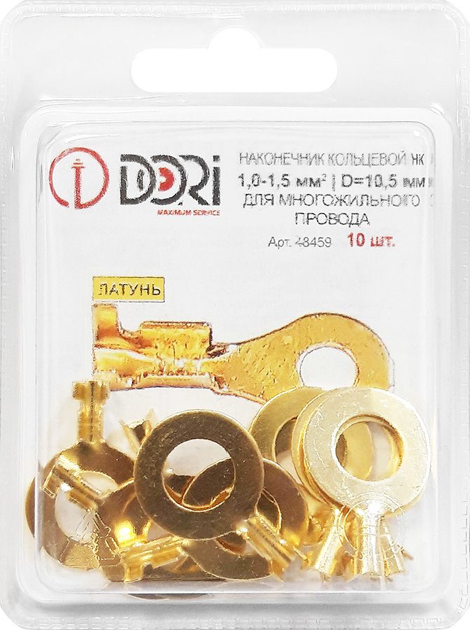 48459 Наконечник кольцевой неизолированный (НК) 1,0-1,5мм2 d=10,5мм, латунь, 10шт в блистере