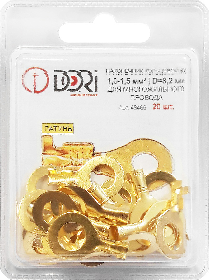 48466 Наконечник кольцевой неизолированный (НК) 1,0-1,5мм2 d=8,2мм, латунь, 20шт в блистере