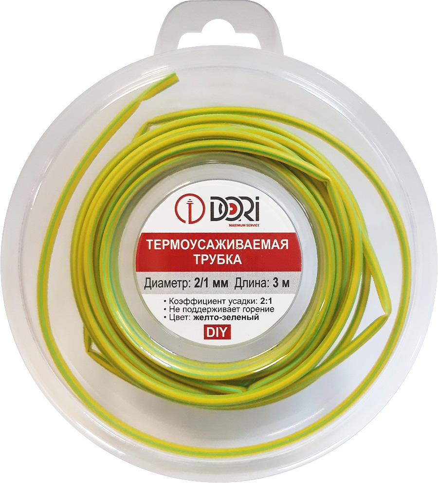 Термоусаживаемая трубка ТУТ 2/1 ролл 3м, желто-зеленая
