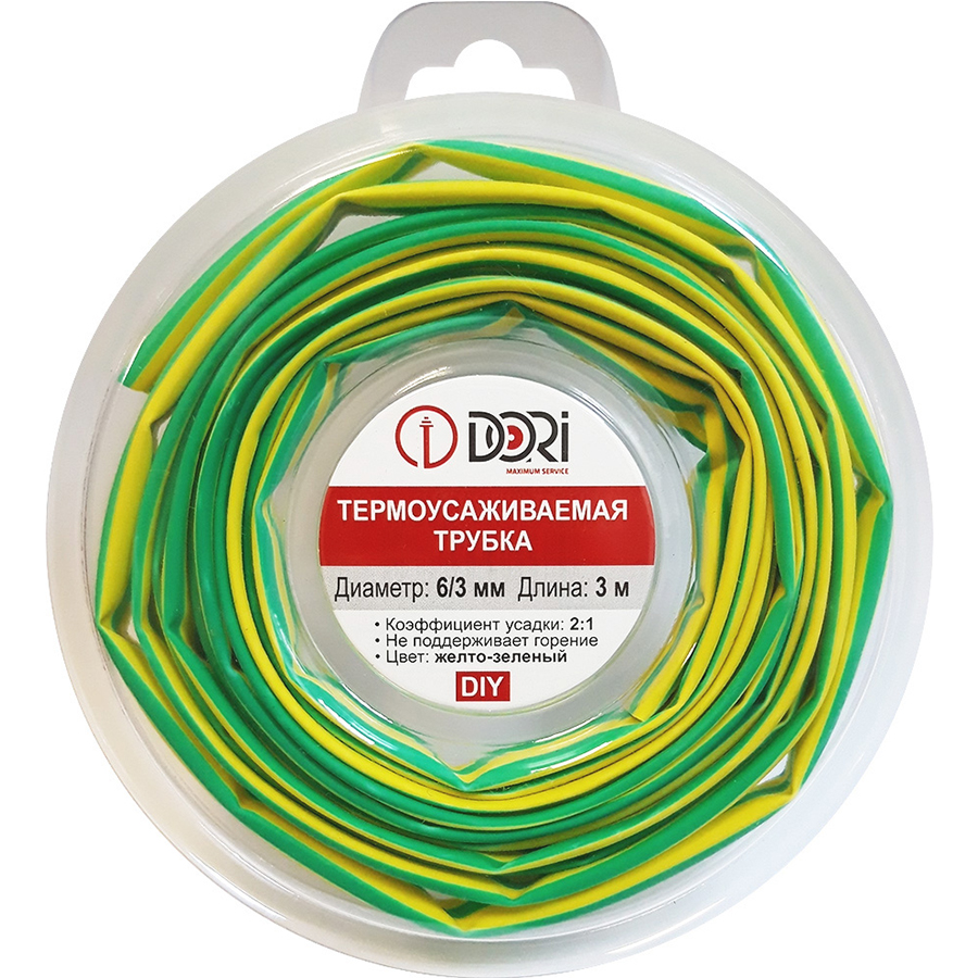Термоусаживаемая трубка ТУТ 6/3 ролл 3м, желто-зеленая