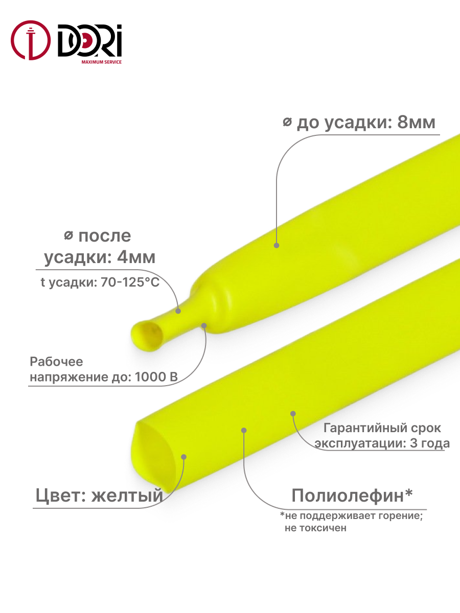 - Диаметр после усадки: 4 мм