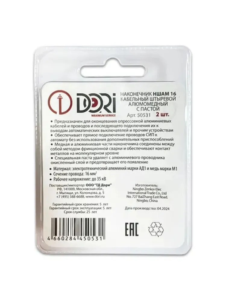 50531 Наконечник кабельный штыревой алюмомедный НШАМ 16мм2 (2шт)