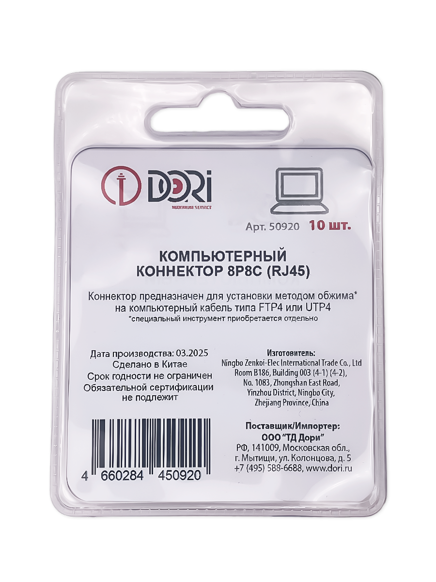50920 Коннектор RJ-45 (8P8C), 10шт в блистере