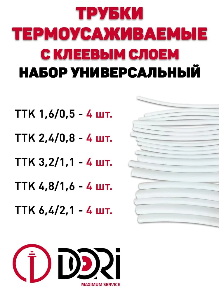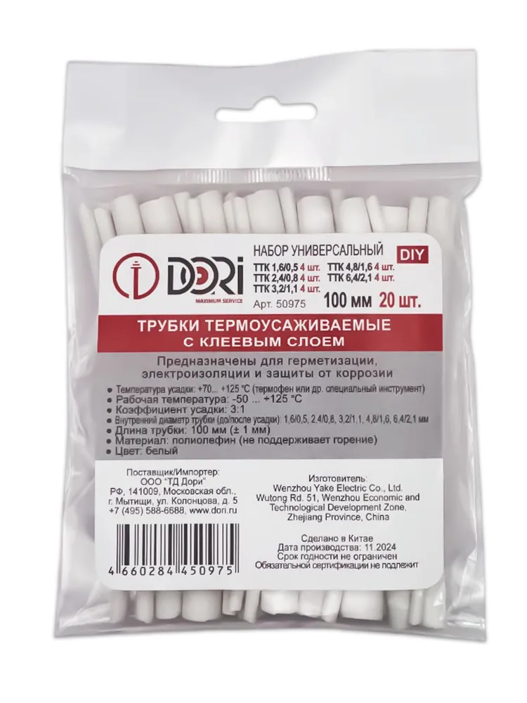 Набор термоусаживаемых трубок ТТК, универсальный белый 20 шт, 100 мм