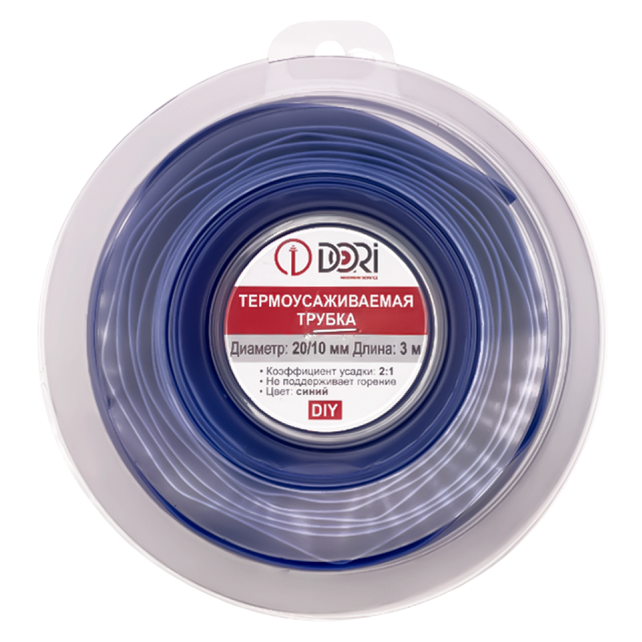 Термоусаживаемая трубка ТУТ 20/10 ролл 3м, синяя