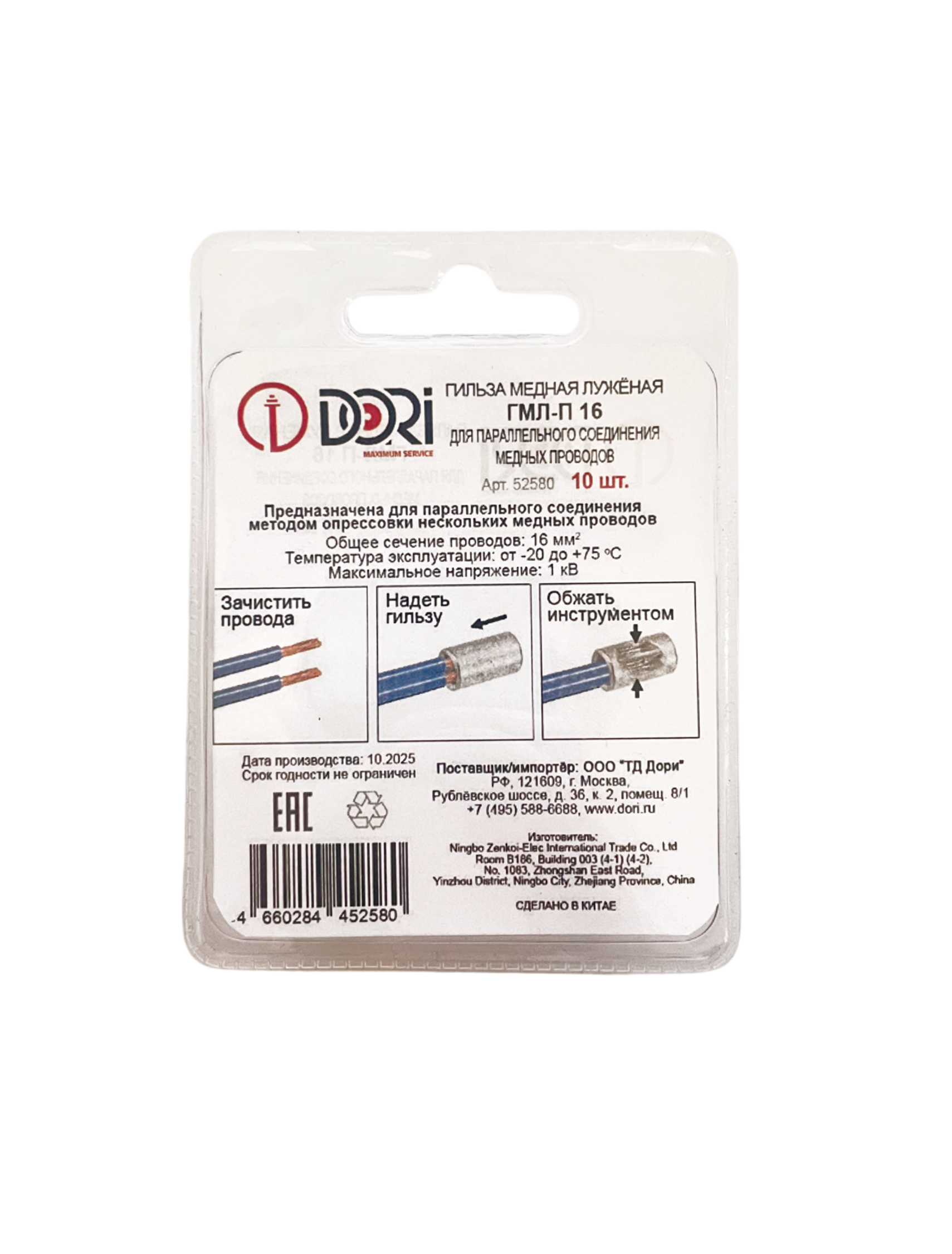 52580 Гильза медная лужёная ГМЛ-п 16 (10 шт)