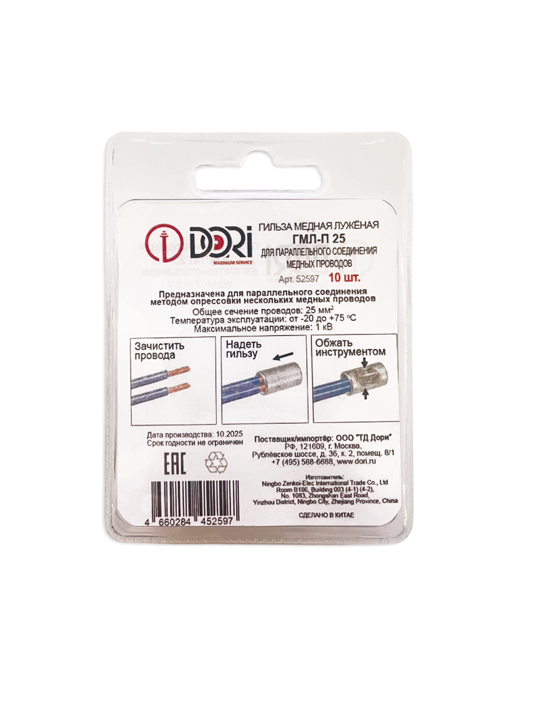 52597 Гильза медная лужёная ГМЛ-п 25 (10 шт)