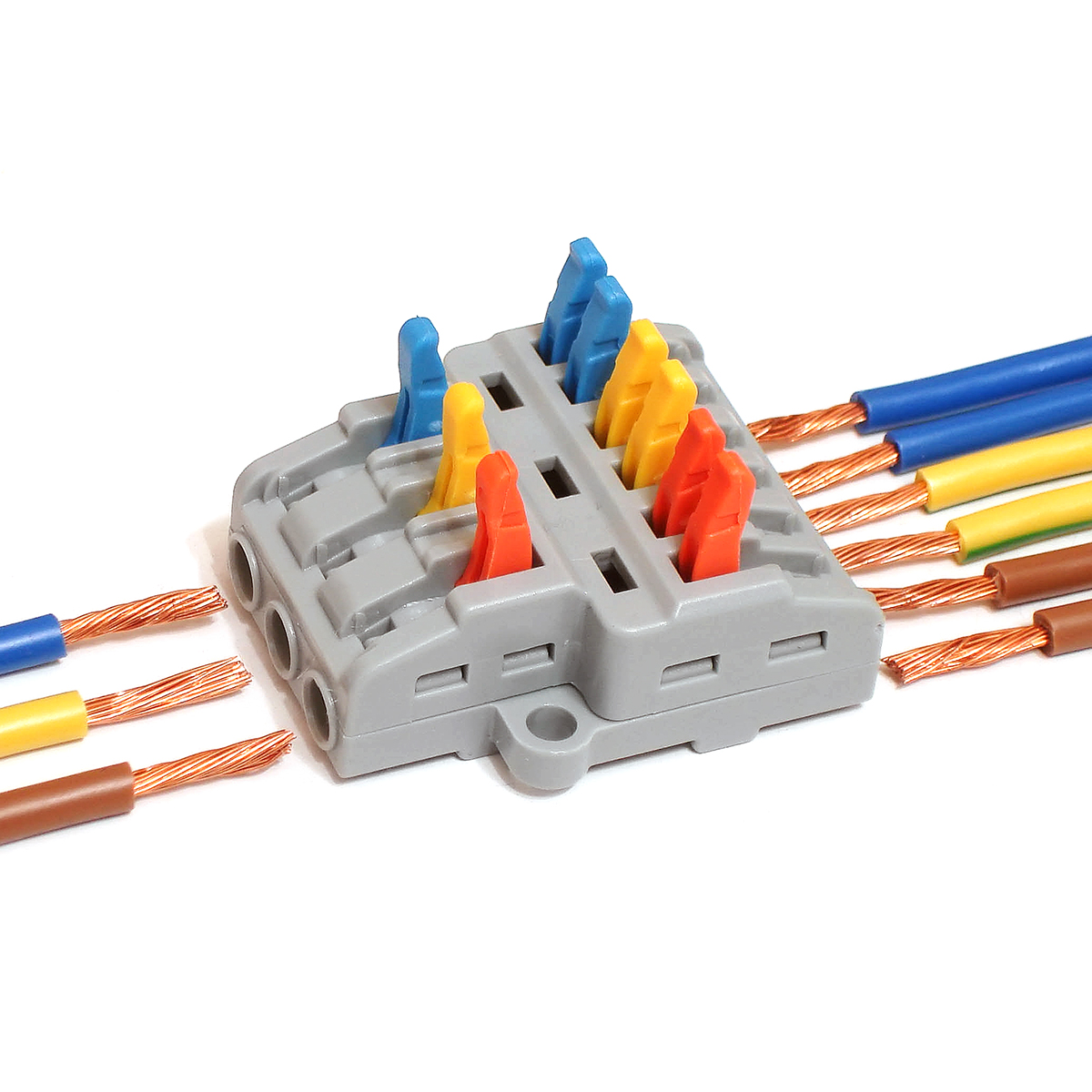Двухполюсная разветвительная клемма СМК 423-6 с рычажковым механизмом предназначена для быстрого и надежного соединения одножильных и многожильных медных проводов. Поставляется в блистерной упаковке по 1 штуке.
