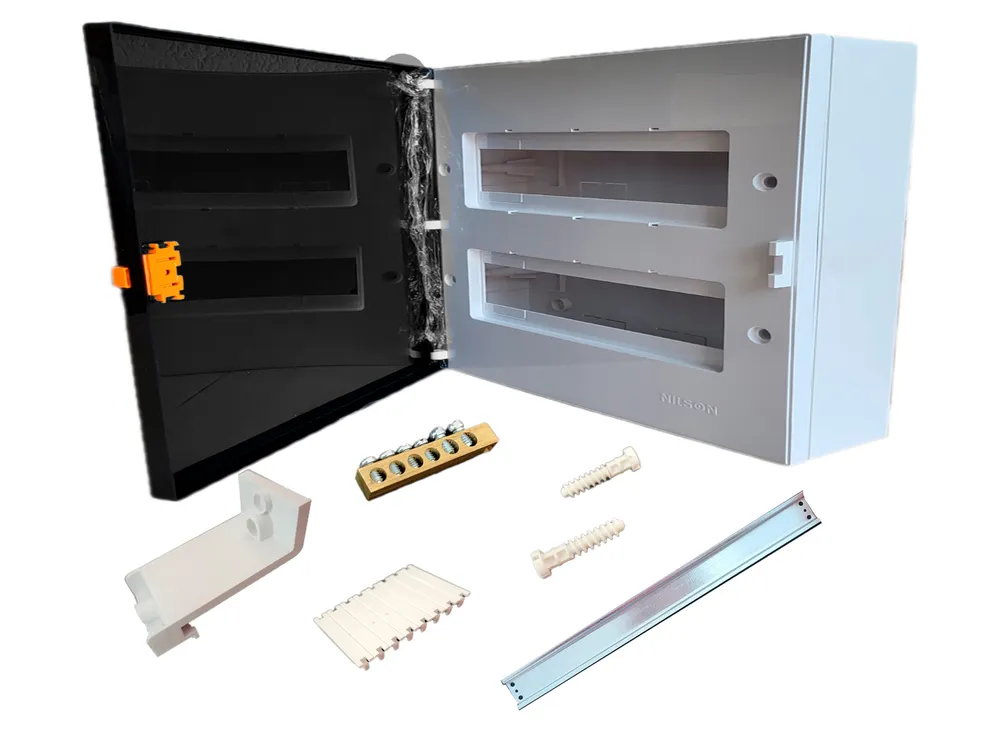 Степень защиты IP44 делает щит подходящим для установки как во внутренних помещениях, так и в зонах с умеренной влажностью, например, в ванной комнате или на кухне. Встроенная съемная DIN-рейка из гальванизированной стали обеспечивает надежное крепление модульных устройств.