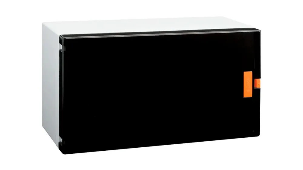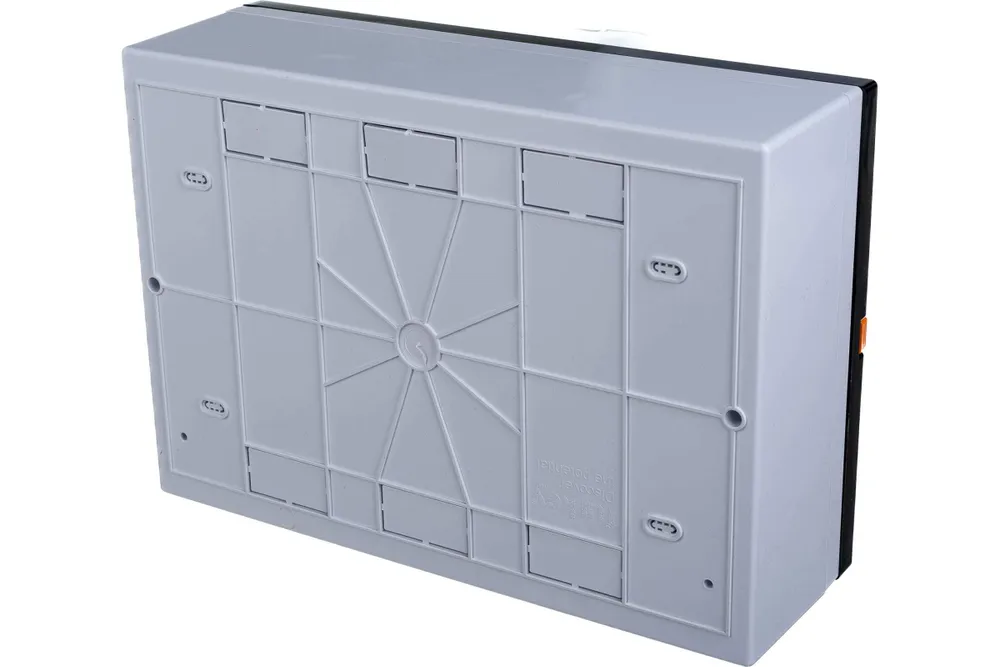 Корпус выполнен из ударопрочного ABS-пластика с высокой огнестойкостью до 650°С, что гарантирует безопасность использования. Полупрозрачная дверца из поликарбоната защищает внутренние элементы от пыли и случайных механических повреждений. Накладной способ установки позволяет монтировать изделие на любую ровную поверхность, что особенно удобно при ремонте или обновлении системы электроснабжения.