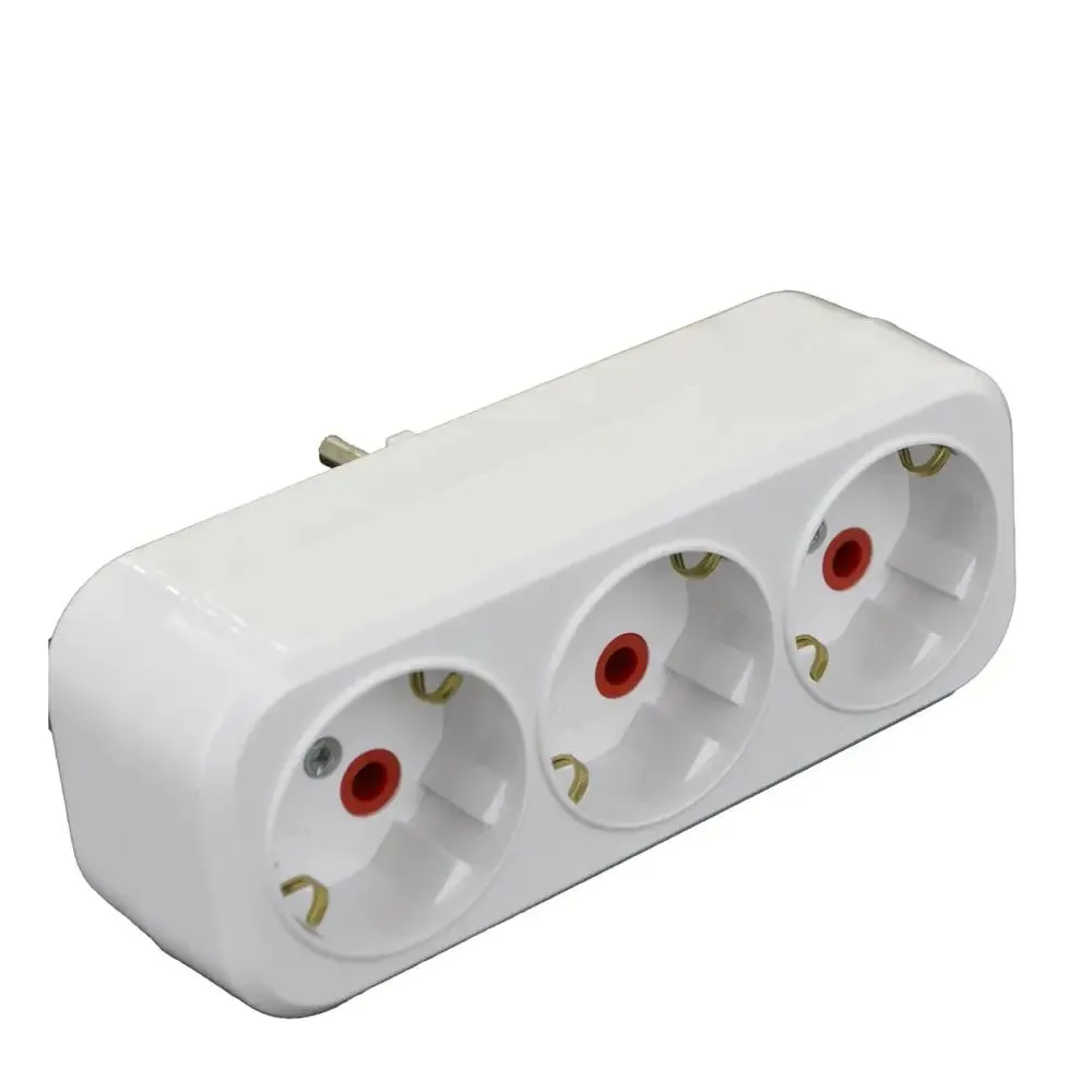 Тройник прямой на 3 розетки с заземлением 16А/250В — удобное решение для расширения доступа к электросети