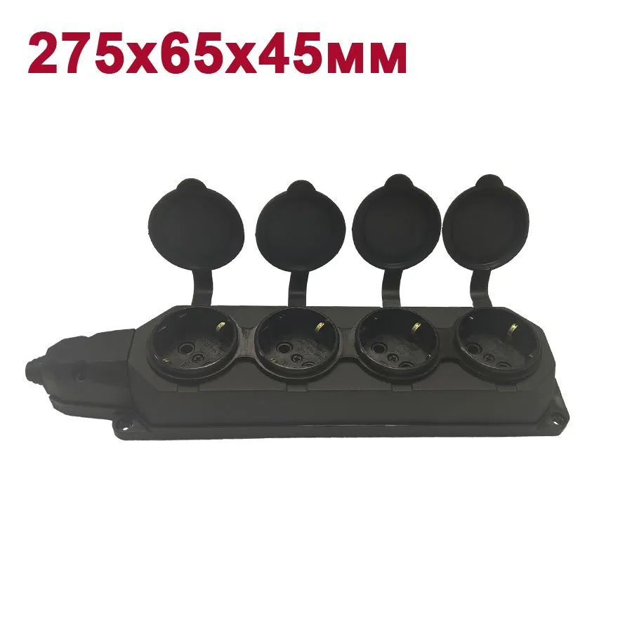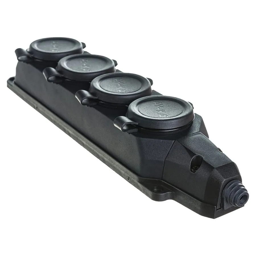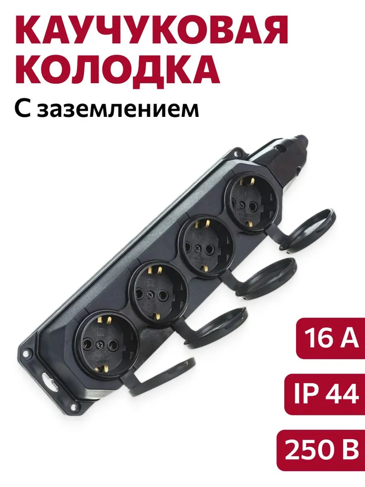 - Колодка 4-местная каучуковая с заземлением 16А IP44, черная — 1 шт.