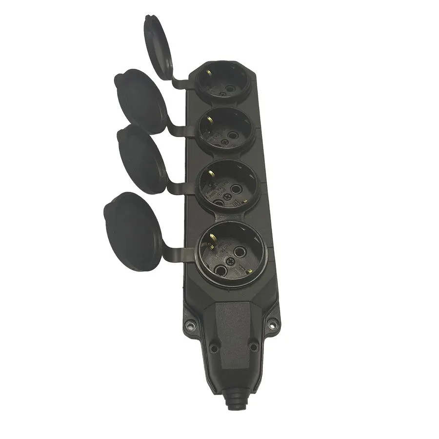 Розетка накладная 4-местная каучуковая с заземлением IP44 — надежное решение для дома и улицы